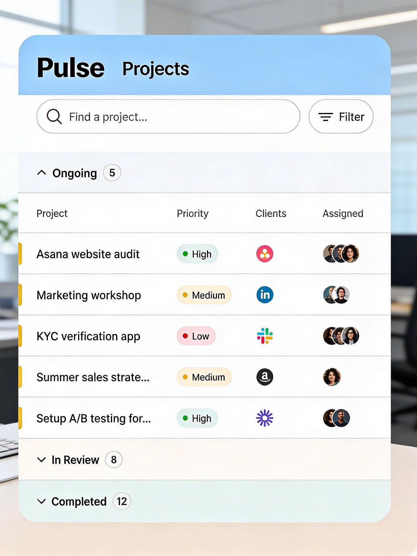 โPulse replaced three separate tools for our team. We went from juggling spreadsheets and emails to having a single source of truth for every project and invoice.โ